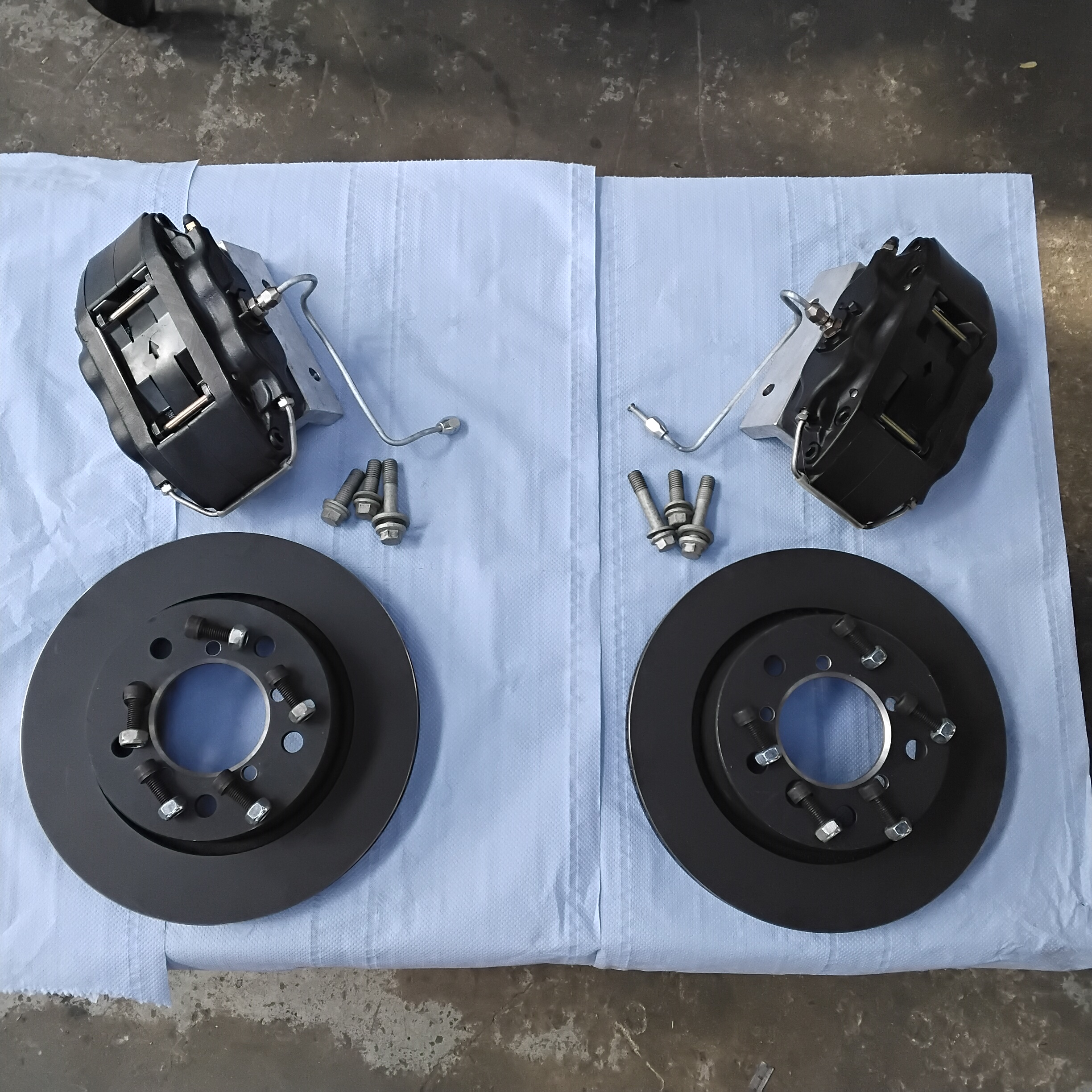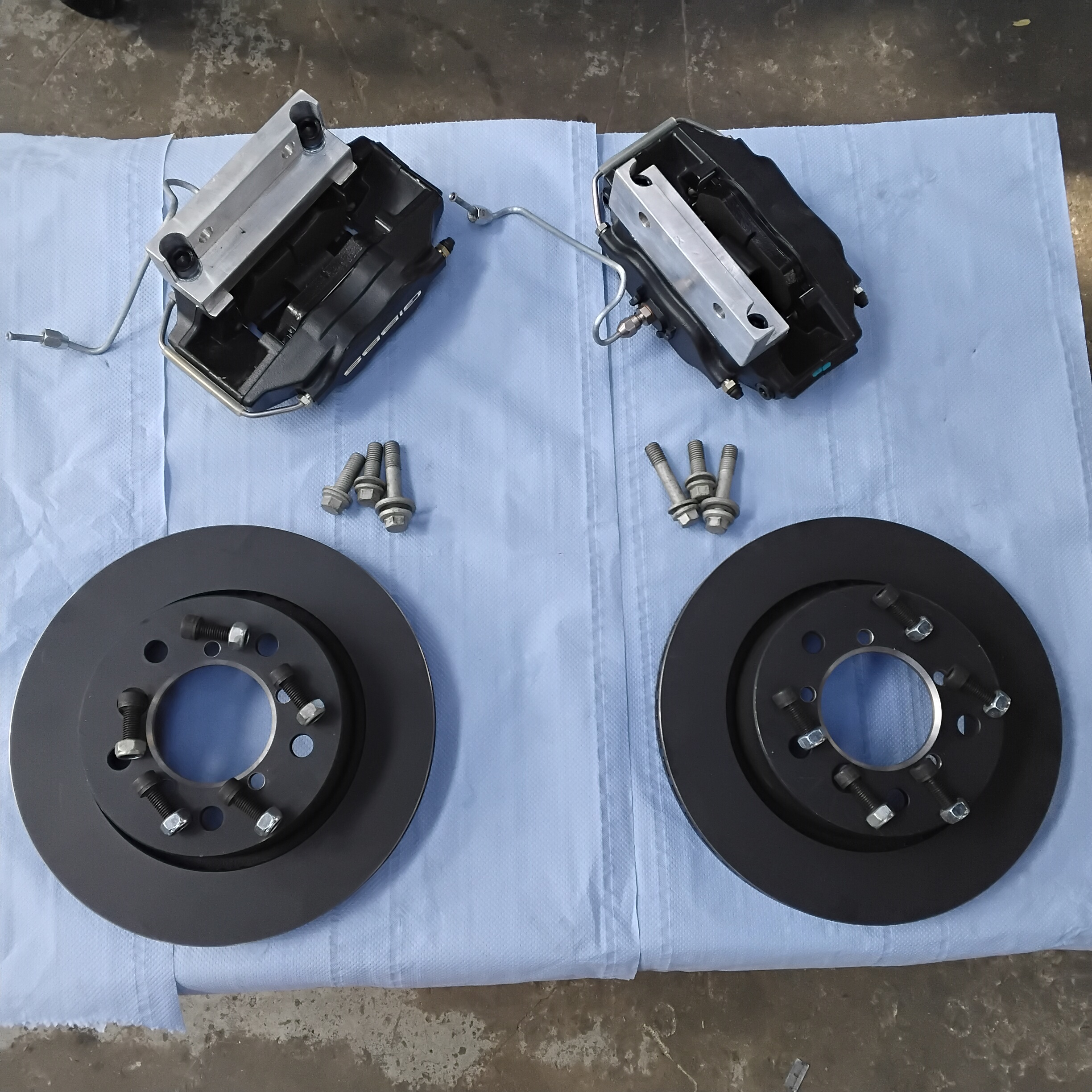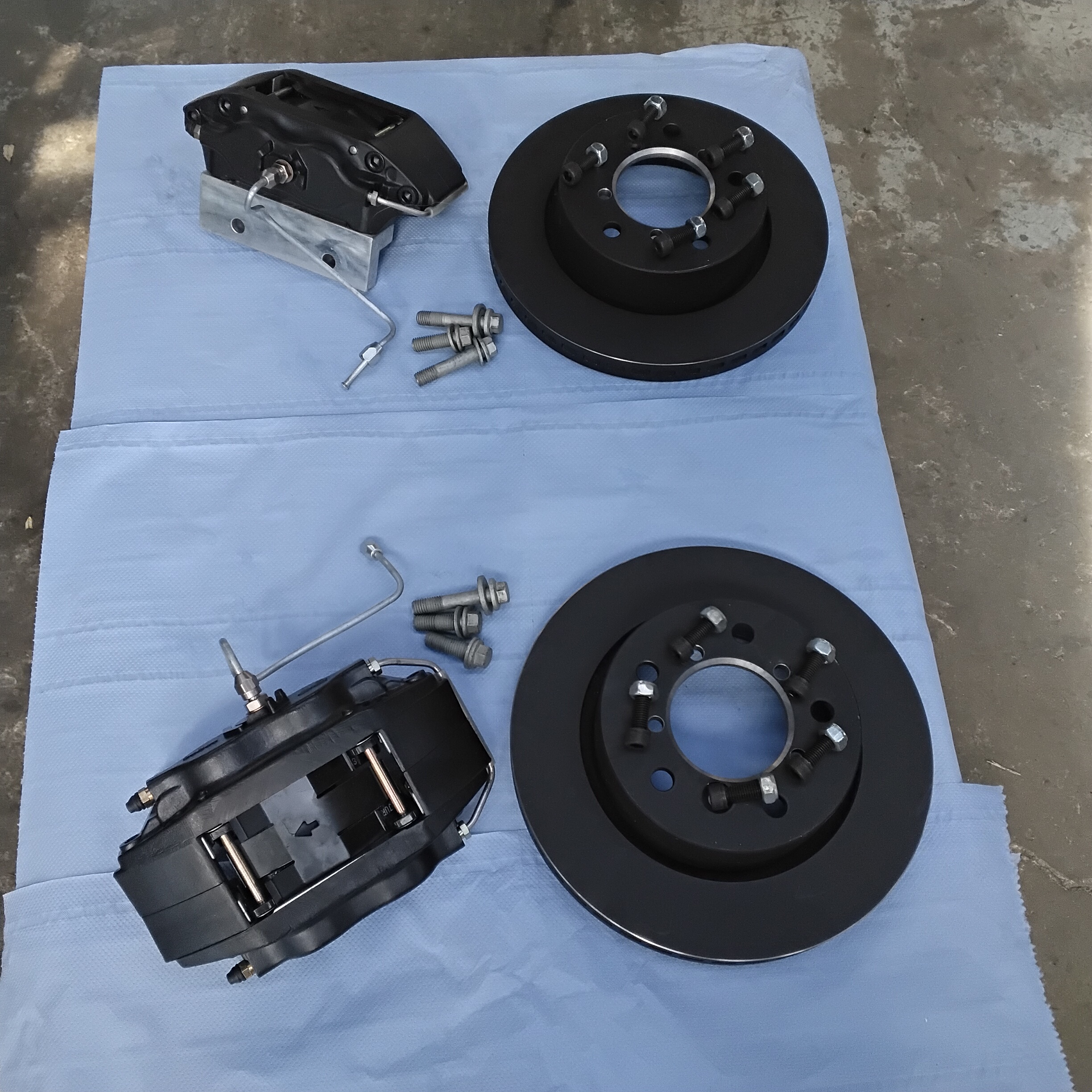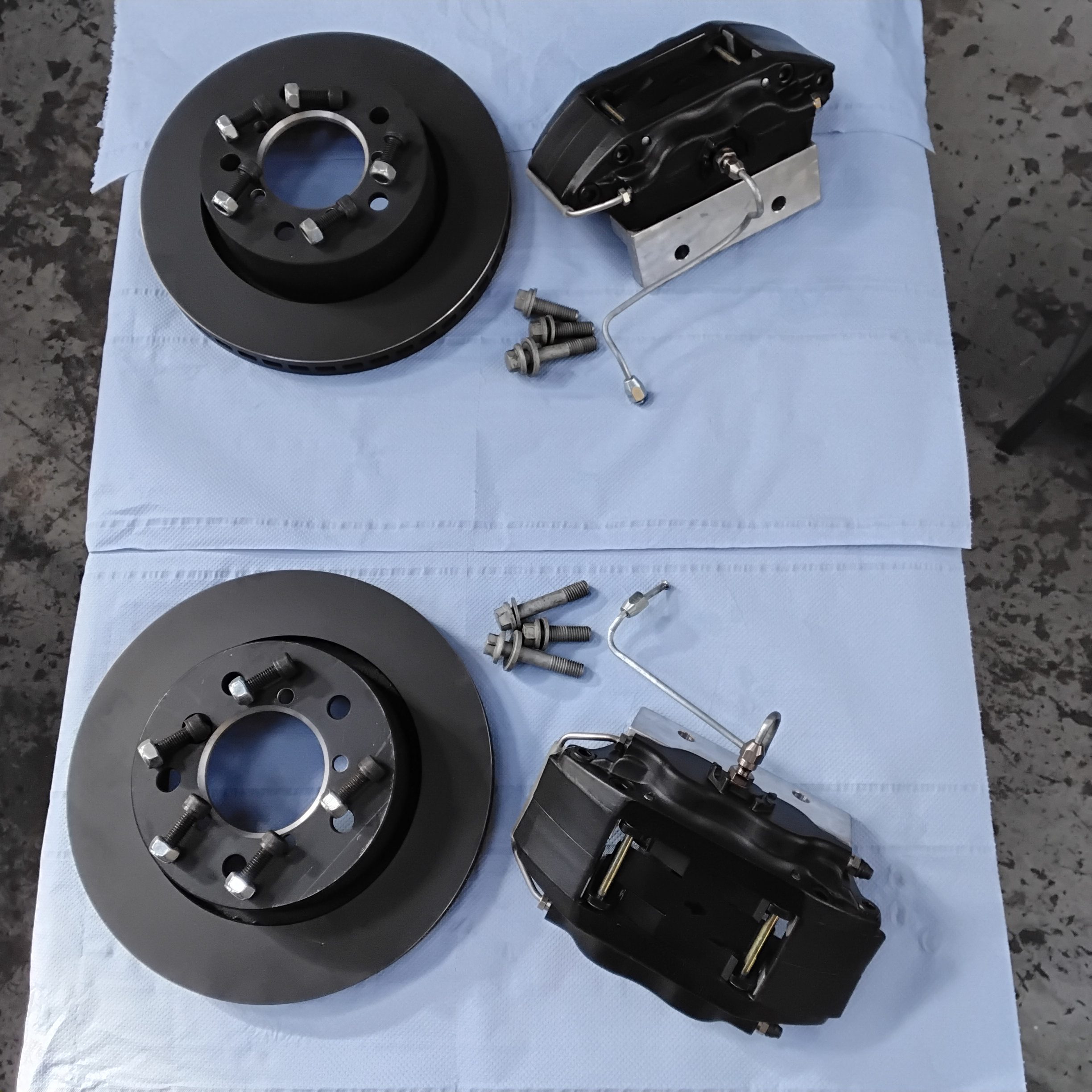 Parts include 2 brand new AP4 piston calipers, 2 Billet caliper brackets, 2 brand new vented discs, all bolts and pipework